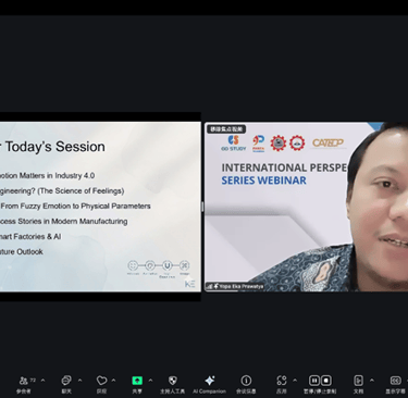 Dr. Yopa Eka Prawatya, Associate Professor, Department of Industrial Engineering, from Universitas Tanjungpura noted manufacturing is evolving toward a human-centered approach where emotional experience is key. He introduced Kansei Engineering as a method that translates customer feelings into tangible design elements like color and material through structured analysis. Connecting to Industry 4.0, he highlighted how AI, eye tracking, and digital twins simulate emotional responses. Despite challenges, future products will be more personalized and adaptive to human emotions.