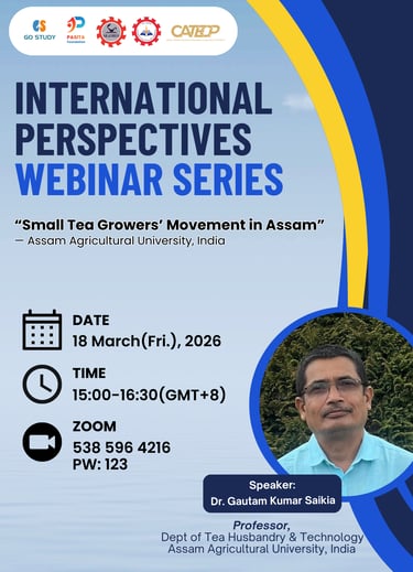 On March 6 and 18, 2026, the March sessions of the “International Perspectives Webinar Series” were successfully held, co-organized by China–ASEAN Technical Education Cooperation Platform (CATECP), the South east Asian Ministers of Education Organization Regional Centre for Technical Education Development (SEAMEO TED), PASITA, and Go Study. Two webinars featured senior experts from Universitas Tanjungpura, Indonesia and Assam Agricultural University, India, sharing insights on Kansei Engineering in Modern Manufacturing and the Small Tea Growers’ Movement in Assam.