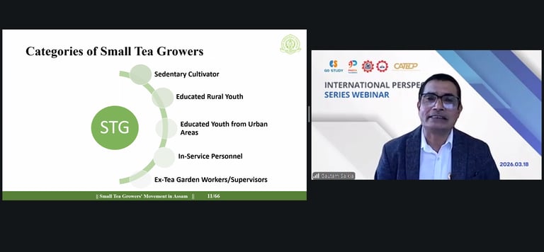 Dr. Gautam Kumar Saikia, Professor, Department of Tea Husbandry and Technology, from Assam Agricultural University defined small tea growers as farmers with up to 10.12 hectares. They produce green leaves for processing without heavy machinery. The sector contributes 25% of India’s tea production, creating jobs, supporting rural youth, and increasing women’s participation. Scientific practices also offer environmental benefits. Since 1991, the university has run an advisory program. Future strategies include strengthening farmer groups, improving marketing, and adopting climate-resilient practices.