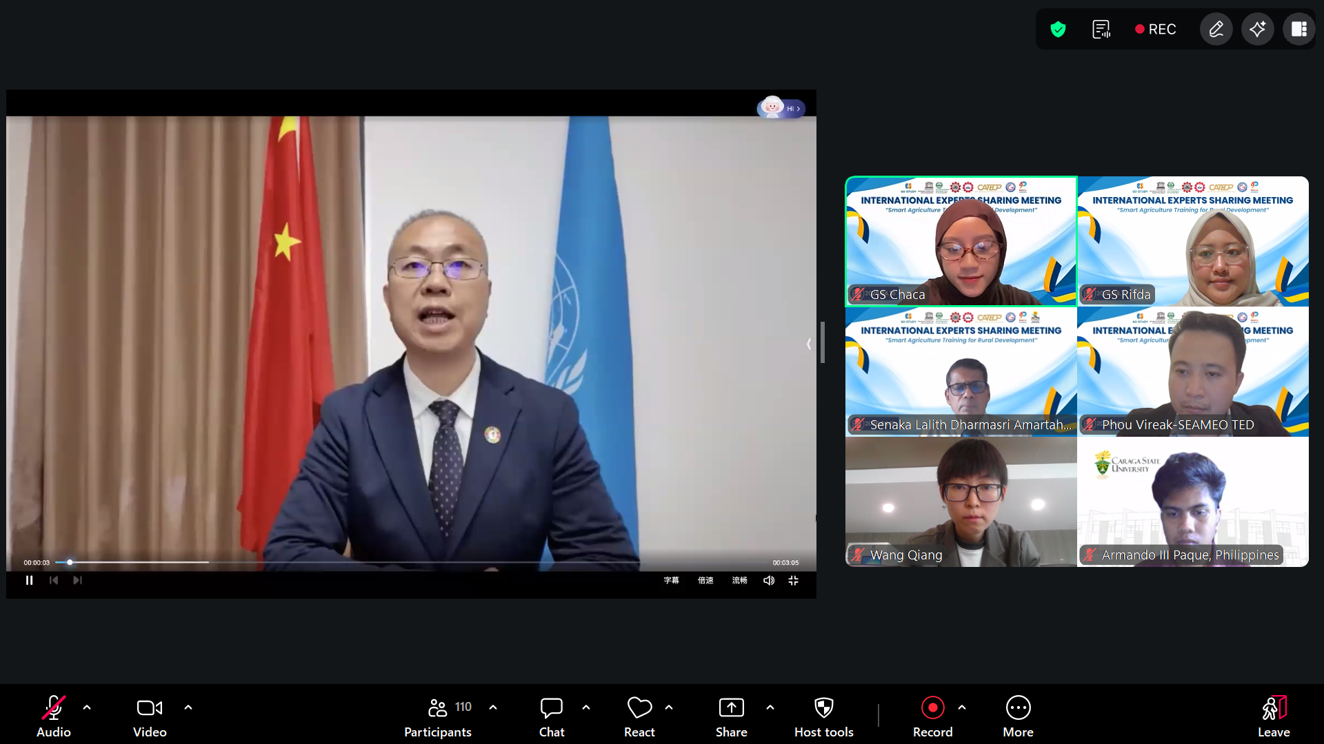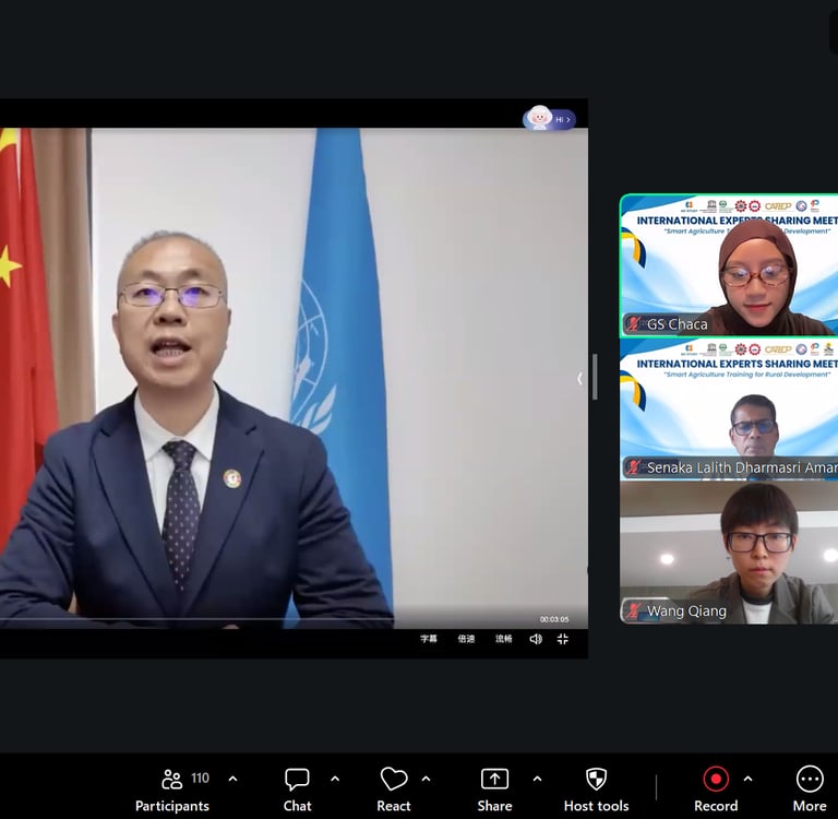 The second opening remark was delivered by Dr. Zhao Yuchi, Executive Director of UNESCO INRULED. He emphasized on how rural development does not only happen because of technologies but also through human collaboration. There are 2.33 billion people experiencing moderate severe food insecurity with approximately 1/3 of them living in rural areas. At the same time, climate change, demographic shifts, and digital innovations present both opportunities and challenges to agriculture production in rural communities. Smart agriculture has been proven to improve productivity, but real development cannot only rely on technologies alone. We need humans to ensure these technologies reached the rural communities. Dr. Zhao encouraged the participants to reflect on how collaborations with stake holders can be fostered, how these technologies can be designed to ensure inclusive and equitable access, and how rural development can be reached through community based educational platforms. He hoped the event can inspire new ideas, strengthen partnerships, and also contributing to more effective approaches to smart agriculture training.