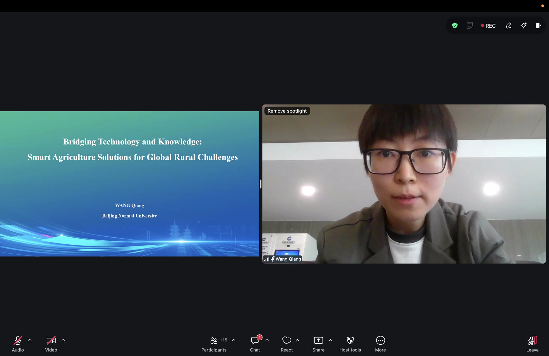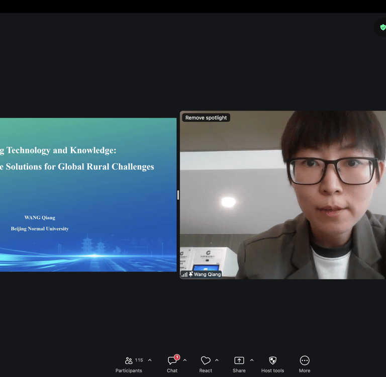 Dr. Wang Qiang firstly mentioned the challenges of rural agriculture development such as labor shortage, low mechanization, pesticide pollution, and lack of training. She then details the transformative power of smart agriculture in addressing rural challenges. She explained that while AI and robotics boost productivity, success is fundamentally tethered to training and knowledge transfer. Centering on a UAV electrostatic centrifugal spraying case study, she illustrates how innovation significantly improves orchard coverage while reducing pesticide use by 30–50%. Not only that, the innovation also improves the efficiency for farmers to pest control and also improving the safety as well as maintaining protection to the environment. By training over 2,000 professionals and collaborating with international experts, Dr. Wang concludes that the government need to invest in training, education, knowledge sharing, cross-disciplinary collaboration and focuses on empowering farmers in order to reach sustainable rural development.