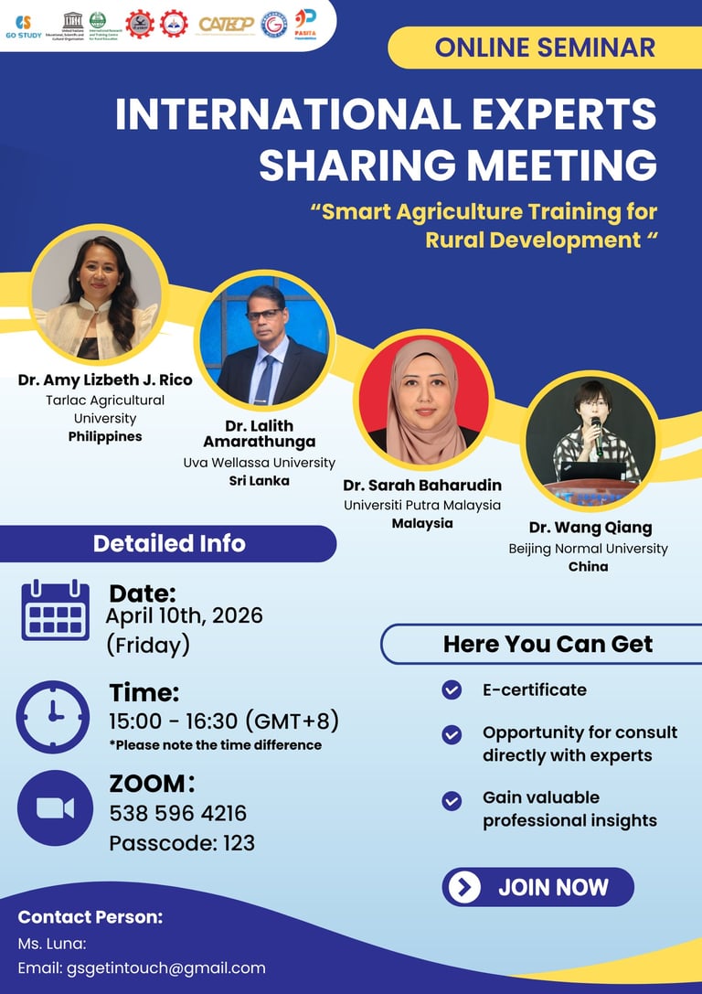 Topic: Advancing Rural Development through Innovative Smart Agricultural Training: Global Perspective