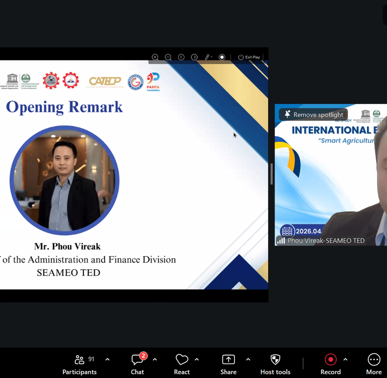 On the afternoon of April 10, 2026, the 4th session of the “International Experts Sharing Meeting,” jointly organized by the China-ASEAN Technical Education Cooperation Platform (CATECP), the Southeast Asian Ministers of Education Organization Regional Centre for Technical Education Development (SEAMEO TED), UNESCO International Research and Training Centre for Rural Education (INRULED) and Go Study Global Education, was successfully concluded online. The meeting was attended by 115 male and 97 female participants, making a total of 213 participants.