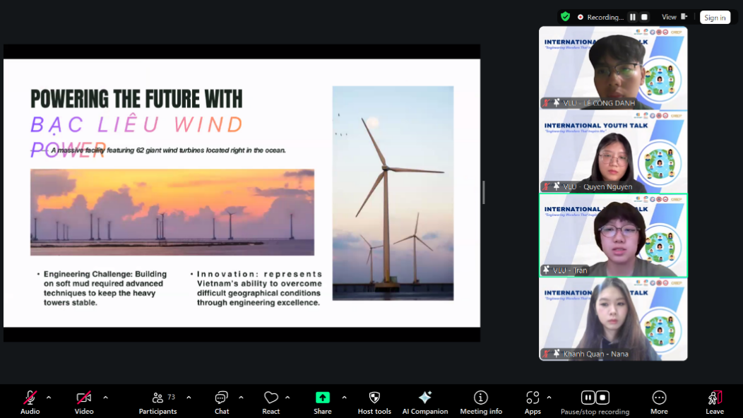 The event featured online presentations by youth representatives from universities across Vietnam and Indonesia. Centered around the theme of “Engineering Wonders That Inspire Me,” the event highlighted the fresh global perspectives of young participants, inspiring creative dialogue and deeper cross-cultural engagement.